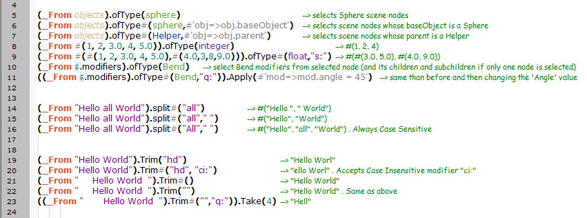 [B]MaxLINQ[/B] tool is intended to be a way to use inside maxscript language sweet predefined functions